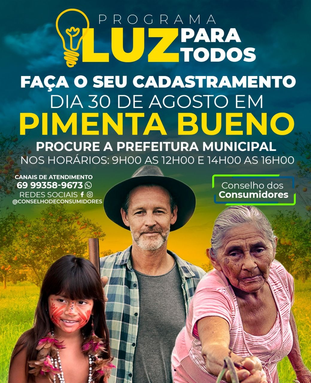 ATENÇÃO Pimenta Bueno, FAÇA O SEU RECADASTRAMENTO E GARANTA O DESCONTO NA SUA CONTA DE LUZ