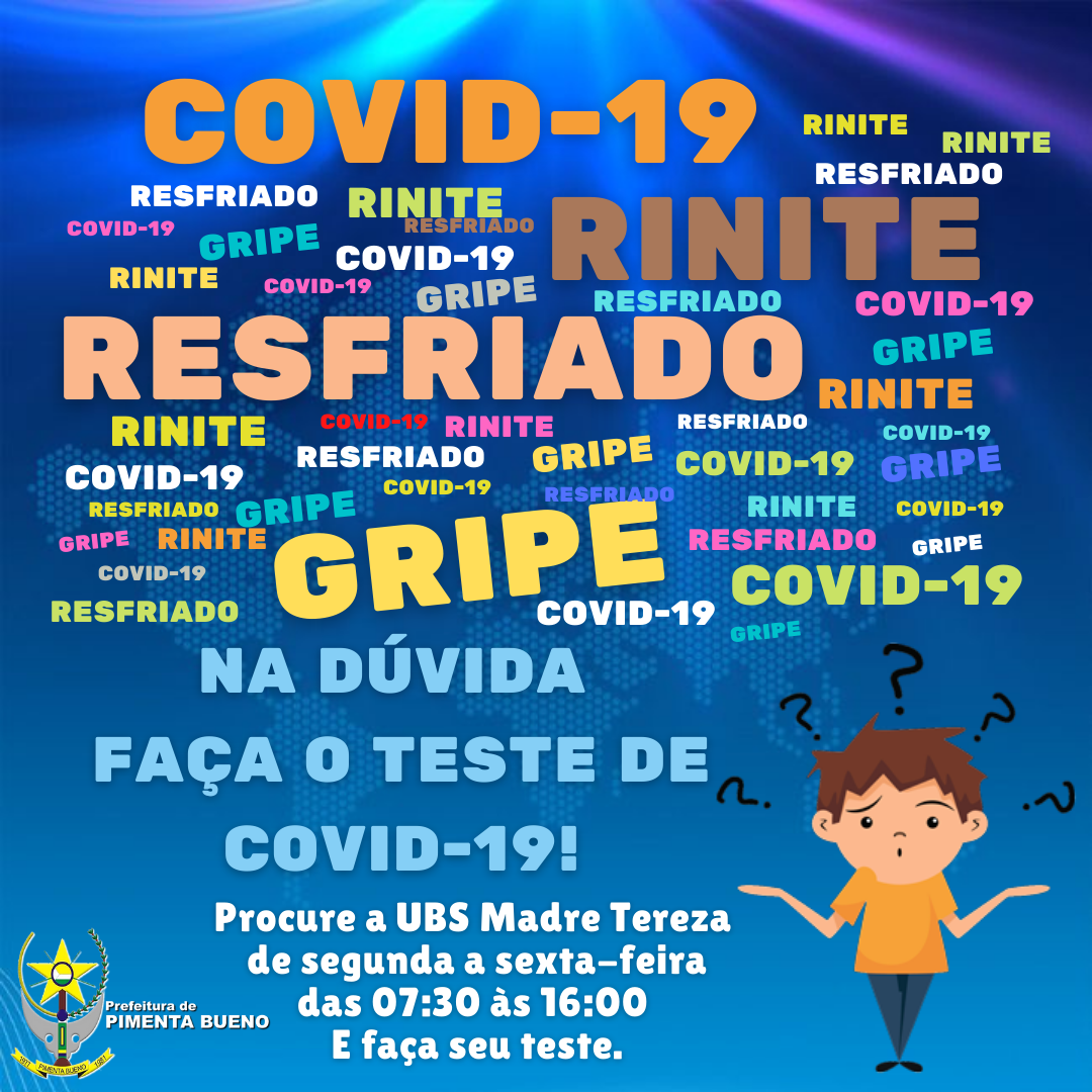 Sabemos que a Covid-19 se apresenta de maneira muito semelhante a outras doenças, como a gripe, sinusite, rinite e o resfriado comum. Então se você está sentindo algum desses sintomas, não fique na dúvida, faça o teste de Covid-19
