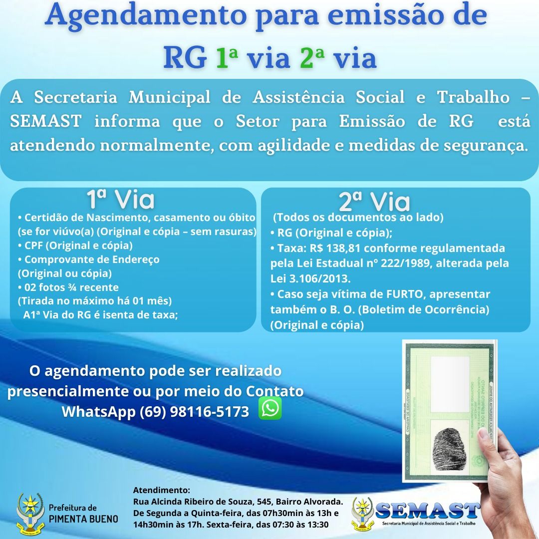 para emissão de RG está atendendo normalmente, com agilidade e medidas de