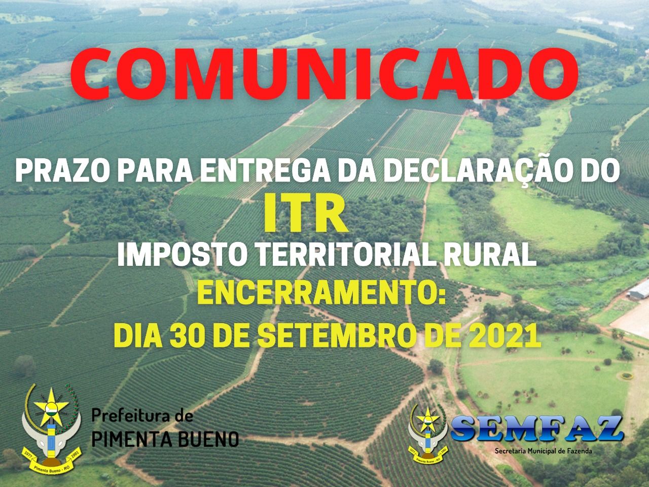 que o prazo para a entrega da Declaração do ITR – Imposto Territorial Rural (DITR)
