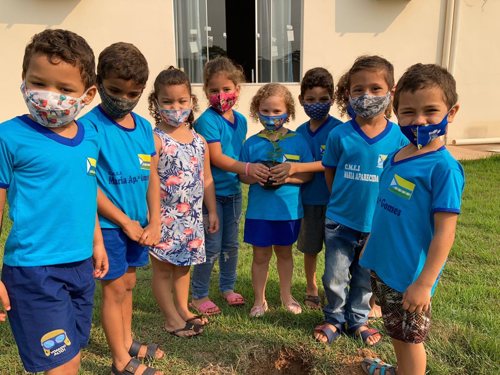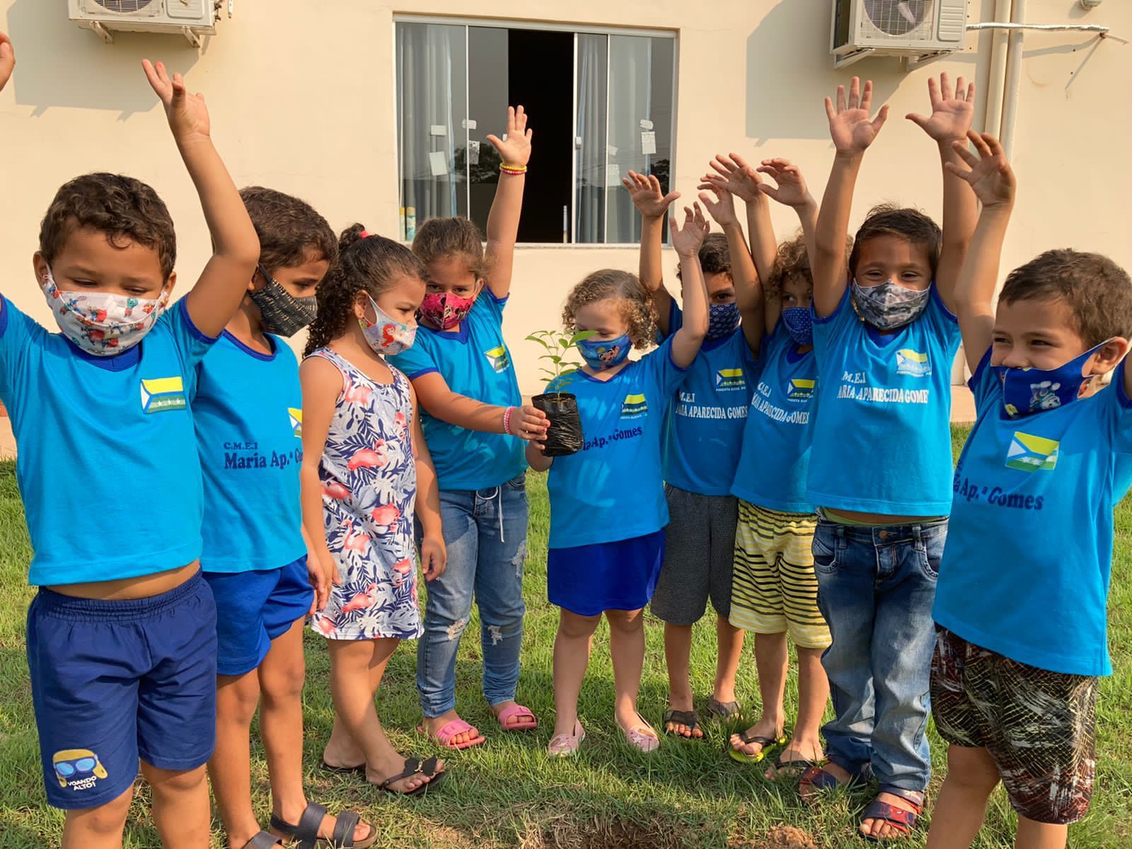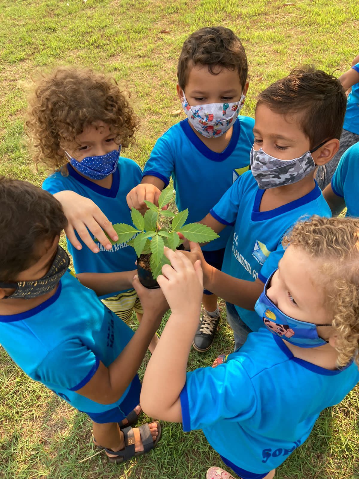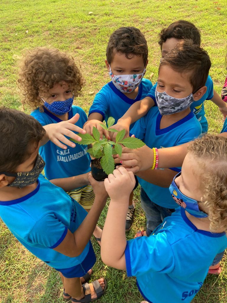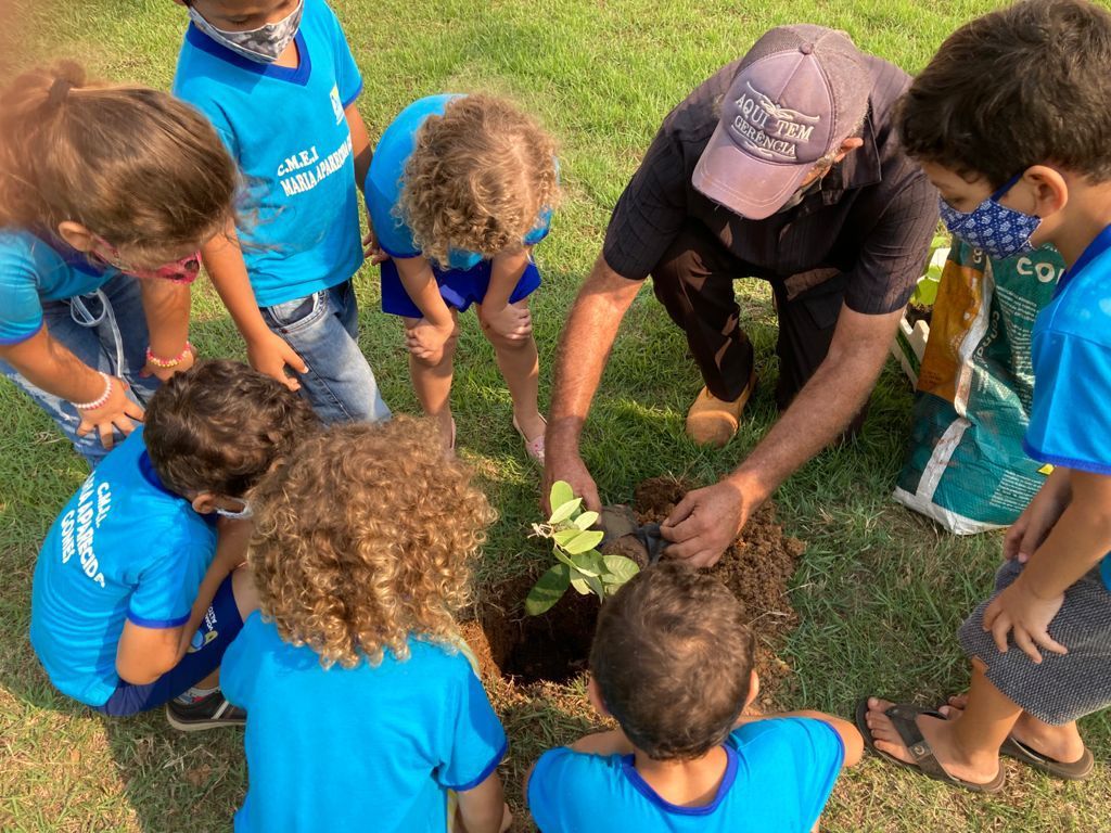 com a Creche Betinho desenvolveram um projeto de plantio e cuidado das árvores