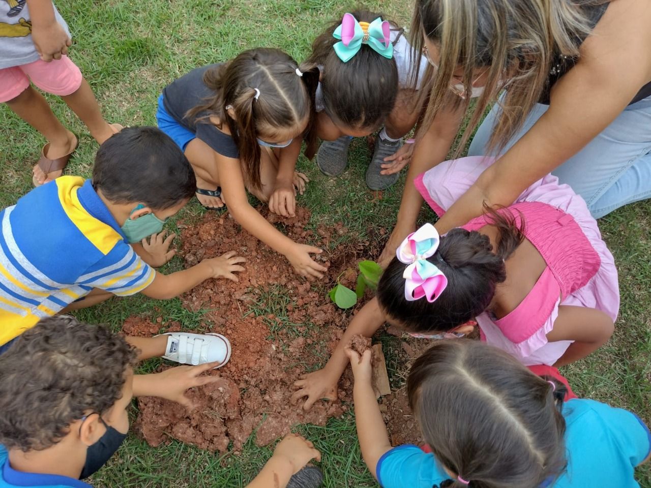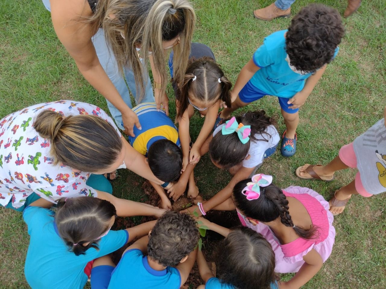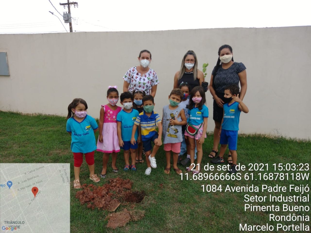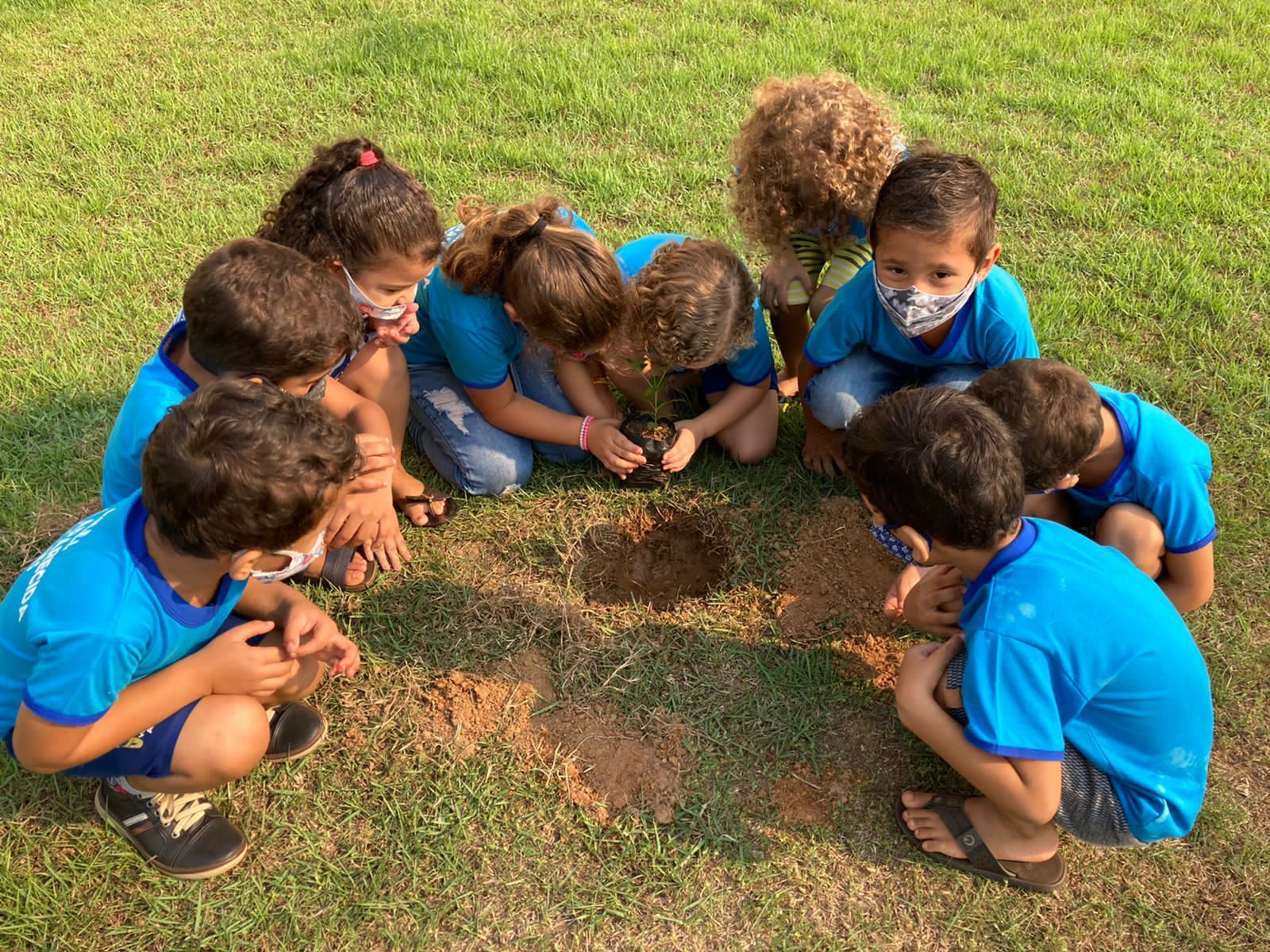 com a Creche Betinho desenvolveram um projeto de plantio e cuidado das árvores