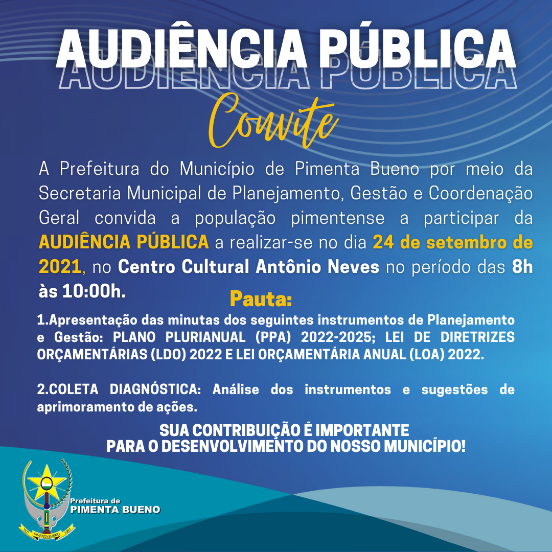 Geral convida a população pimentense a participar da AUDIÊNCIA PÚBLICA a realizar-se no dia