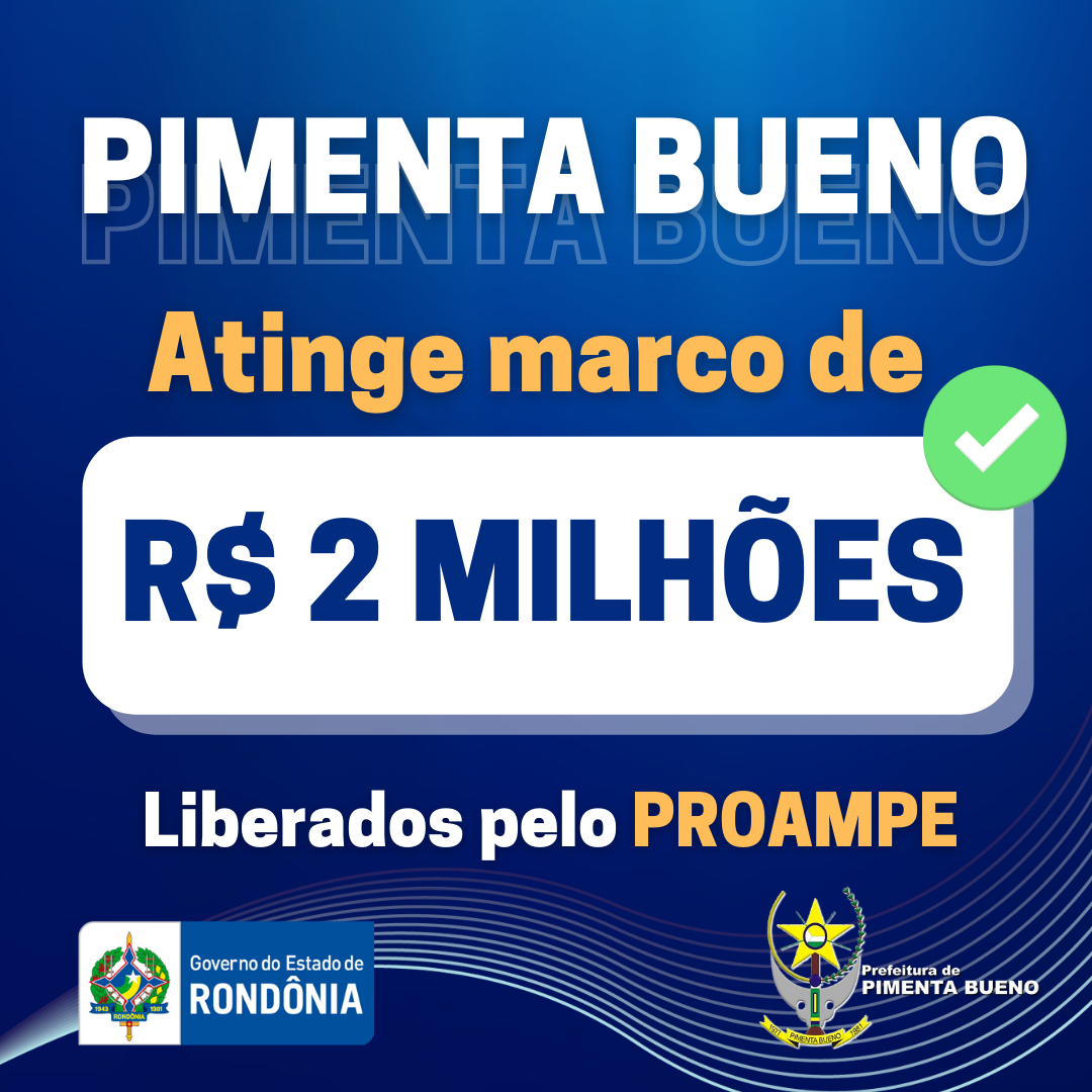 Atualmente Pimenta Bueno atinge o marco de R$ 2.000.000,00 (dois