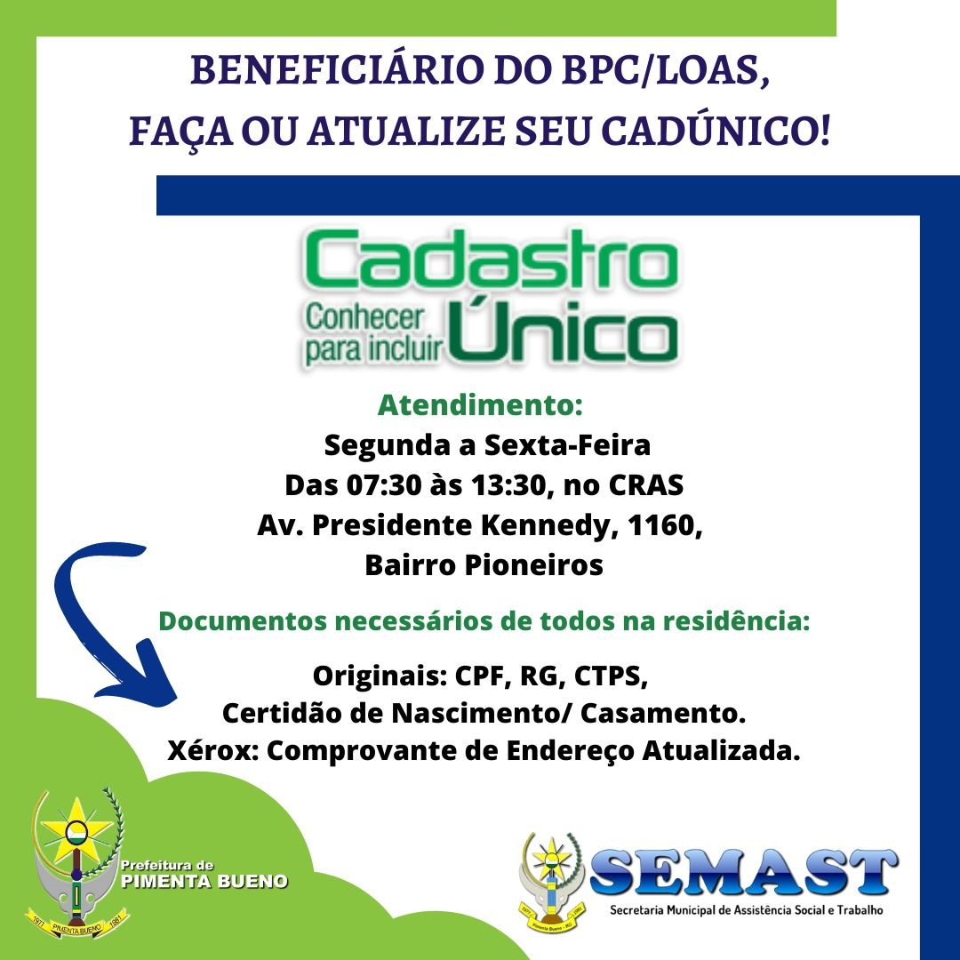 Beneficiário Do BPC/LOAS, Faça ou atualize seu cadúnico!