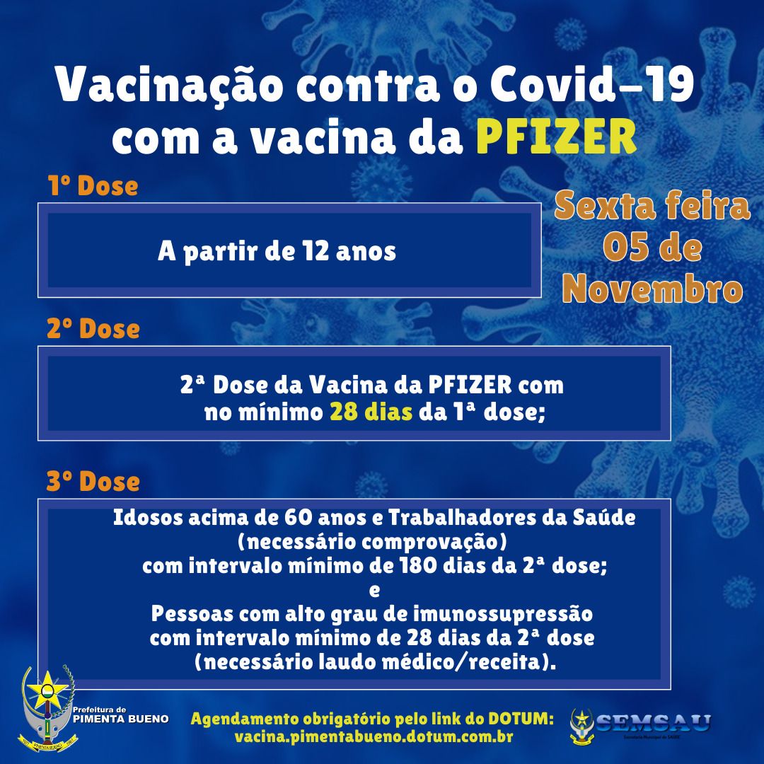 2ª Dose da Vacina da PFIZER com no mínimo 28 dias da 1ª dose;