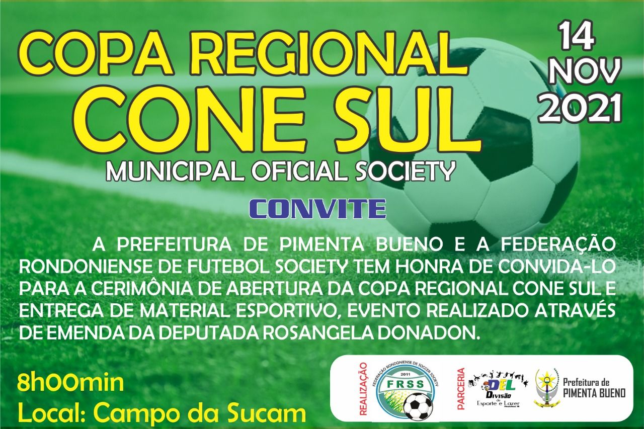 A Prefeitura municipal de Pimenta Bueno convida a todos para a cerimônia de abertura da Copa Regional Cone Sul municipal Society.