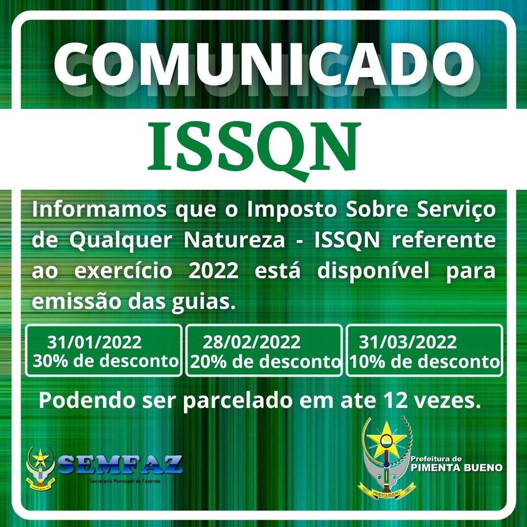 relativas ao Imposto Sobre Serviço de Qualquer Natureza – ISSQN, exercício