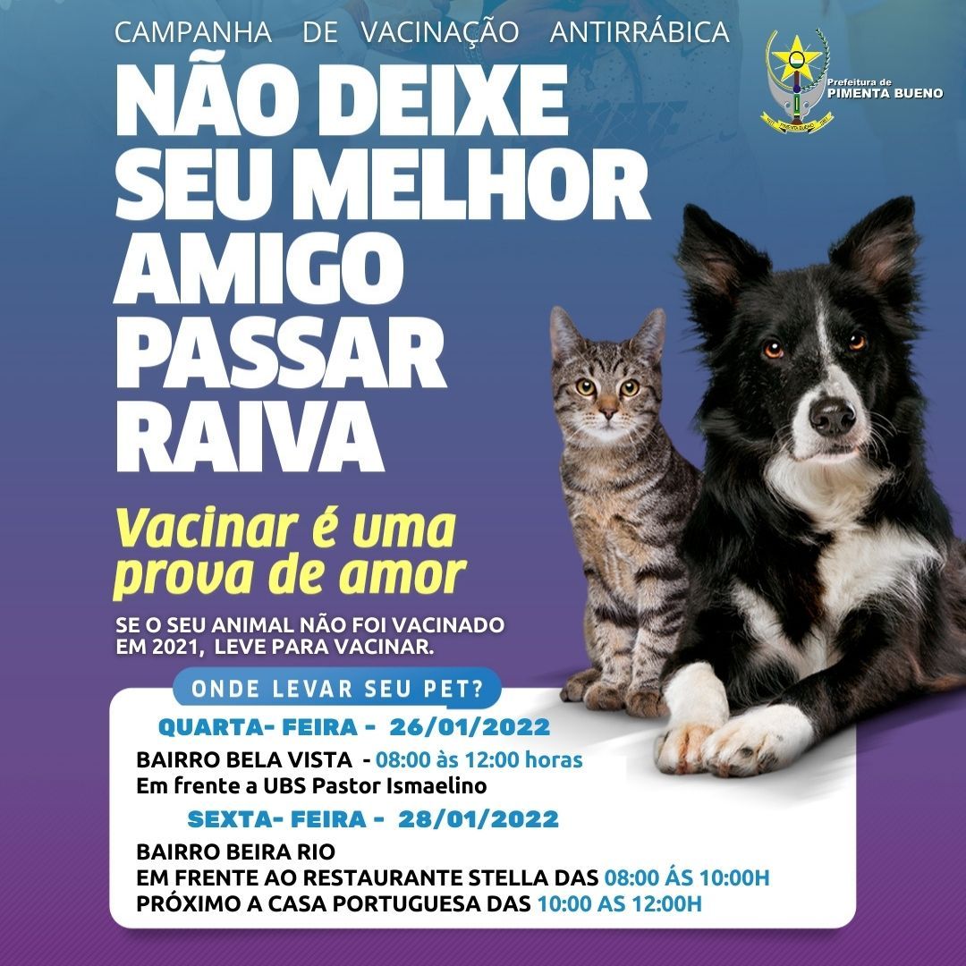 Não deixe seu melhor amigo passar raiva. Vacinar é uma prova de amor! Se o seu animal não foi vacinado em 2021, leve para vacinar.