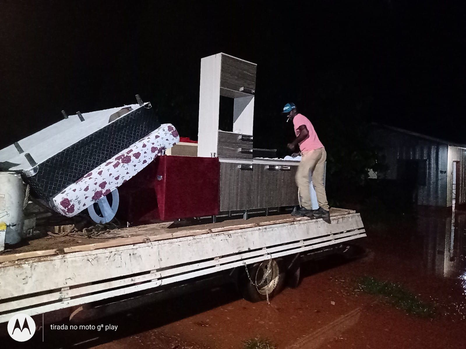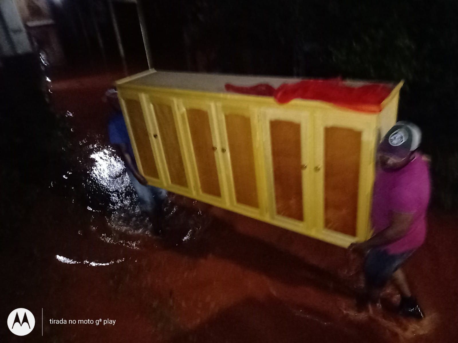 A Prefeitura de Pimenta Bueno está auxiliando as famílias a retirarem móveis e objetos pessoais de suas residências em locais alagados.