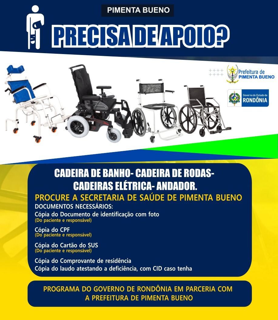 Se você está precisando desse apoio, a Prefeitura de Pimenta Bueno juntamente com o Governo de Rondônia pode ajudar. Procure a Secretaria de Saúde com os seguintes documentos: