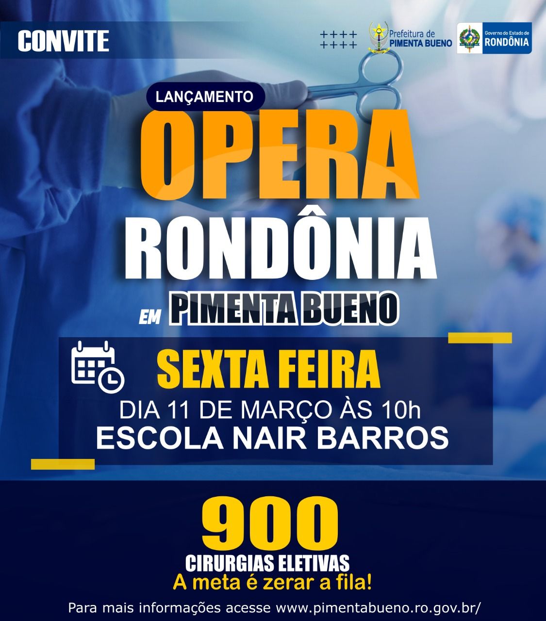 Serão realizadas 900 cirurgias eletivas, com o objetivo de zerar a fila de espera de procedimentos cirúrgicos no estado.