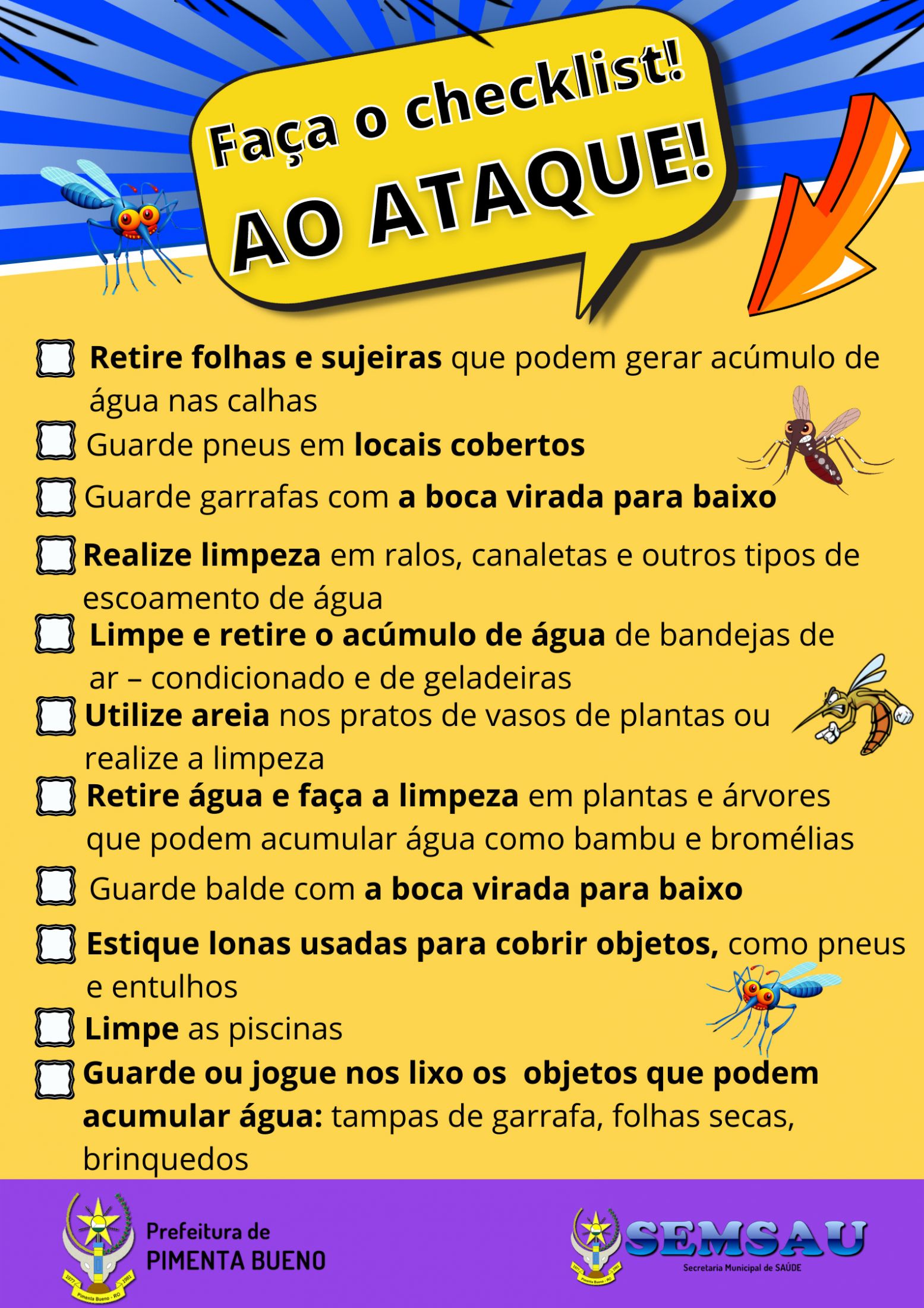podem acumular água: tampas de garrafa, folhas secas, brinquedos