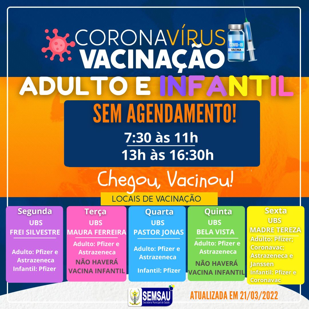 Vale ressaltar que a vacinação infantil está disponível para todas as crianças com idade entre 5 a 11 anos, necessário o acompanhamento do responsável.