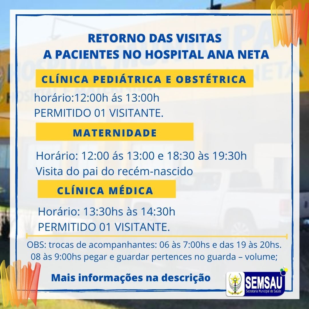 trocas de acompanhantes: 06 ás 7:00hs e das 19 às 20hs. (Na obstetrícia permitido