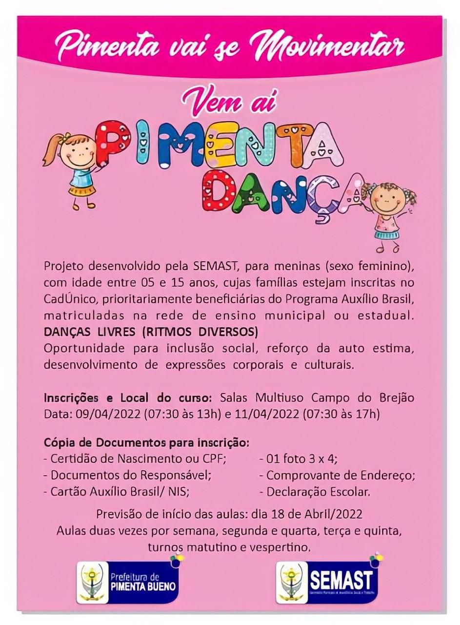 Pimenta Bueno vai se movimentar, vem aí Pimenta Dança!