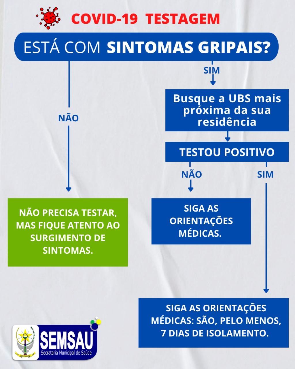 COVID-19 TESTAGEM: Está com sintomas gripais? Confira as informações: