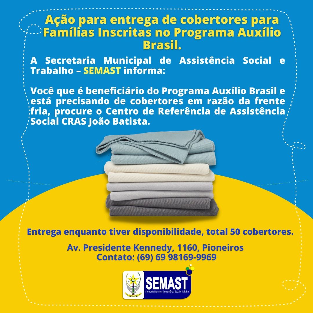 Ação para entrega de cobertores para Famílias Inscritas no Programa Auxílio Brasil.