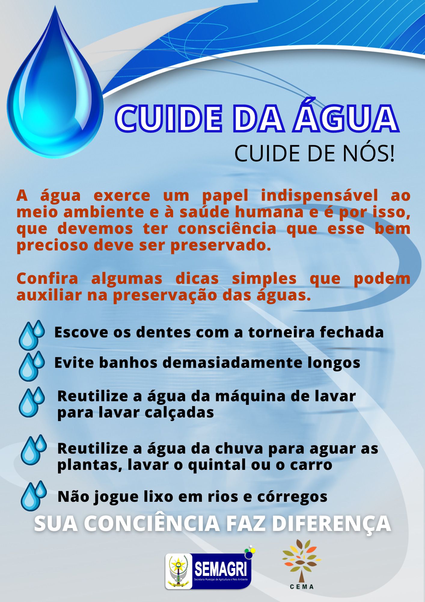 CUIDE DA ÁGUA. CUIDE DE NÓS!