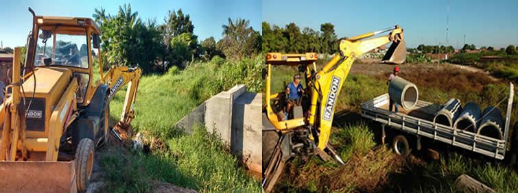 Postura está efetuando a colocação de manilhas para o escoamento Pluvial na Av.