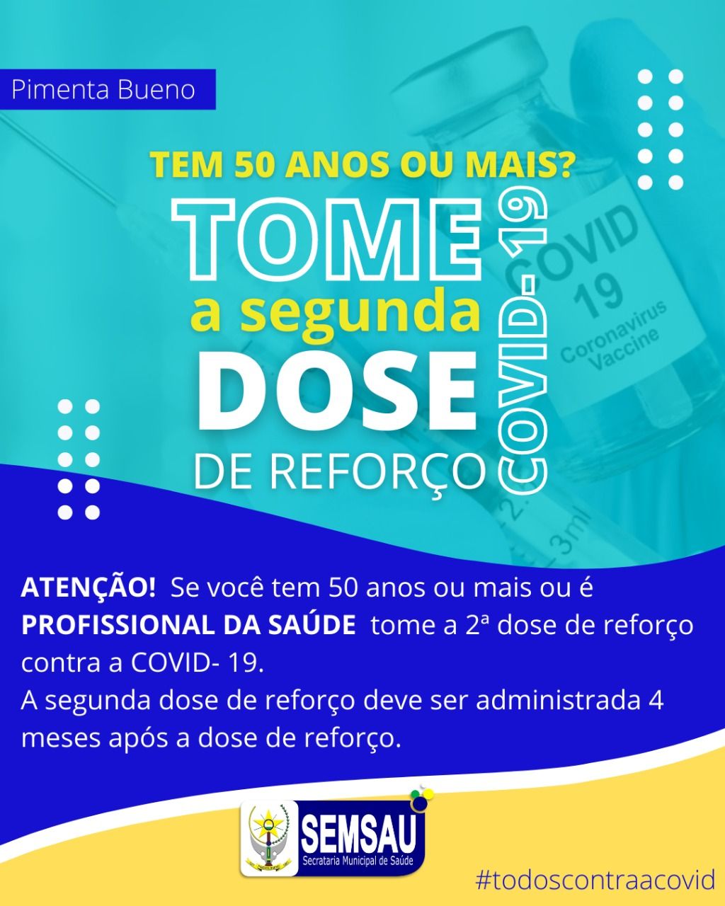 Se você tem 50 anos ou mais ou é PROFISSIONAL DA SAÚDE, tome a 2ª dose de reforço contra a Covi-19.
