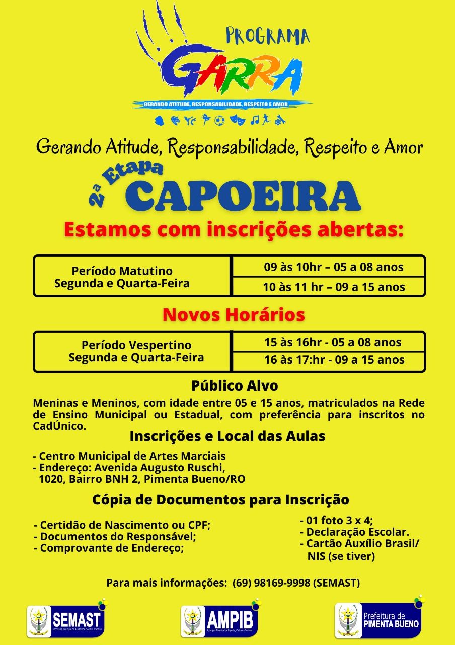 2ª ETAPA DO PROGRAMA GARRA ESTÁ COM NOVOS HORÁRIOS. Confira: