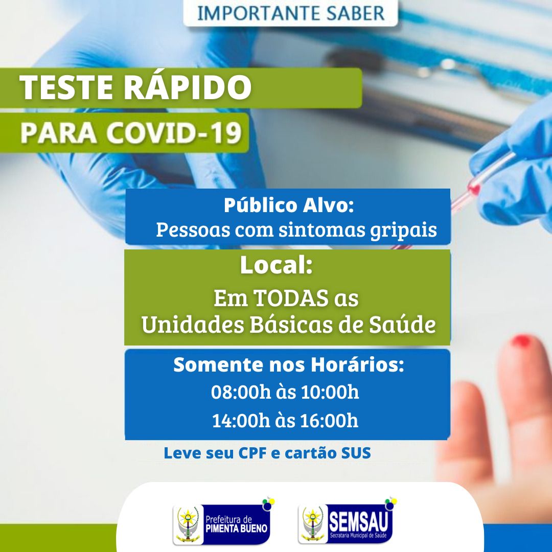 O teste Rápido de Covid-19 é realizado em todas as UBS. Confira Horário: