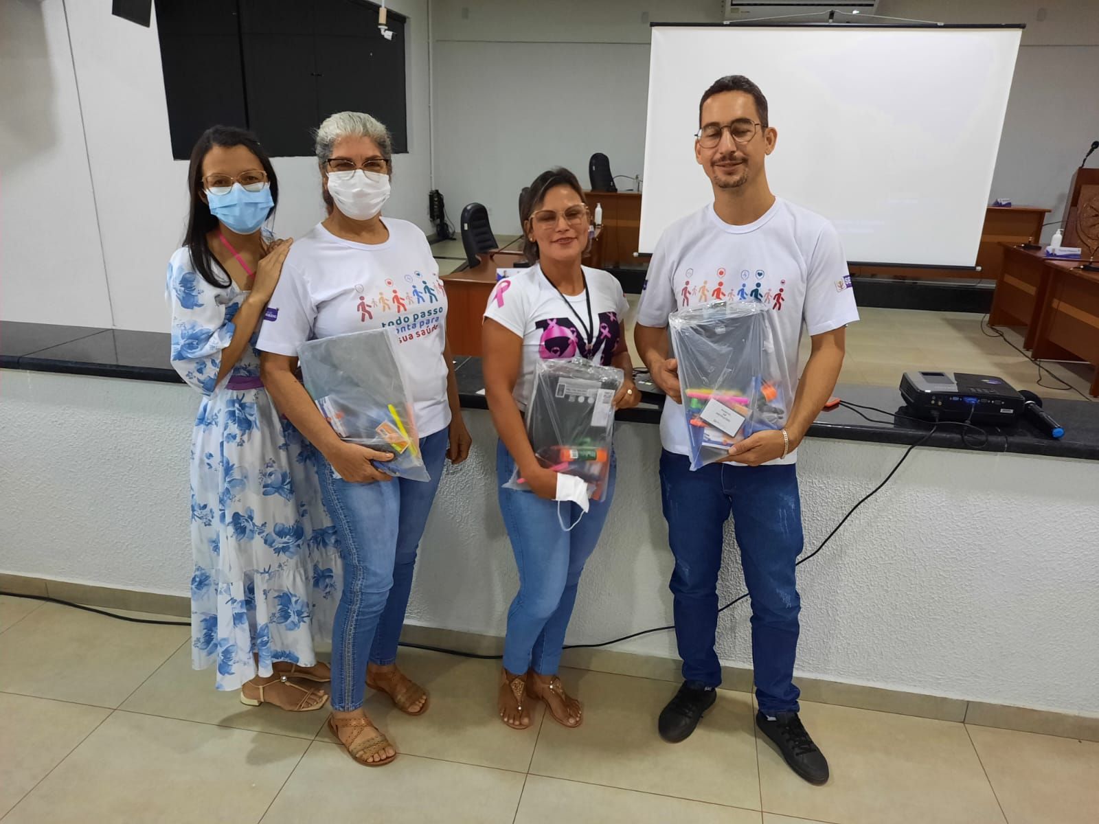 Durante a reunião, a coordenadora da atenção básica Thainara Campos, entregou o kit de material de expediente para os ACS, o material irá servir de apoio para a execução do trabalho dos ACS.