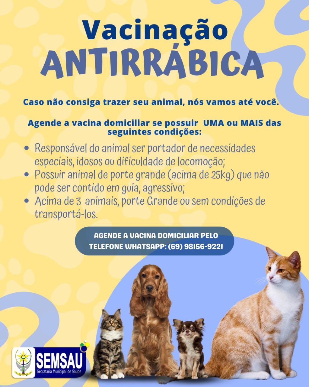 Agende a vacina domiciliar pelo telefone WhatsApp: (69) 98156-9221