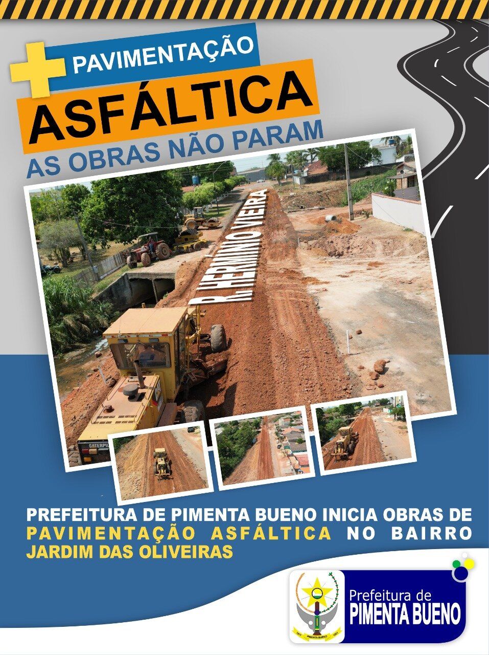 A Prefeitura de Pimenta Bueno deu início às obras de drenagem e pavimentação asfáltica no Bairro Jardim das Oliveiras. O objetivo é melhorar a infraestrutura do bairro e atender as antigas reivindicações dos moradores, garantindo a trafegabilidade em qualquer época do ano e condições climáticas.
