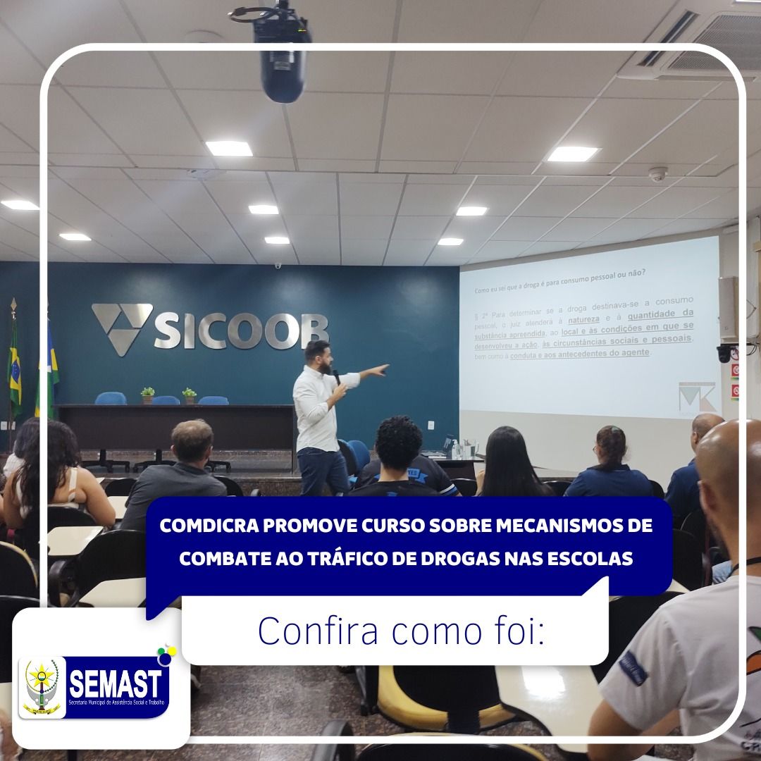 O COMDICRA – Conselho Municipal dos Direitos da Criança e do Adolescente, órgão colegiado, permanente e deliberativo, vinculado a SEMAST, promoveu no dia 31 de agosto de 2022, no auditório do SICOOB, o Curso “Mecanismos de Combate ao Tráfico de Drogas nas Escolas”, o qual foi ministrado pelo docente Matheus Kuhn, Mestre em Ciências Jurídicas e Promotor de Justiça do Ministério Público do Estado de Rondônia, evento este organizado e realizado conjuntamente pelo Conselho Municipal dos Direitos da Criança e do Adolescente – COMDICRA de Pimenta Bueno/RO e SEMAST – Secretaria Municipal de Assistência Social e Trabalho.