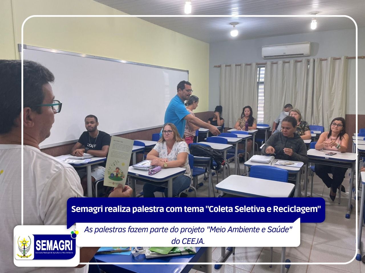 A Secretaria municipal de Meio Ambiente e Agricultura por meio da Central do Meio Ambiente realizou nesta terça-feira, 20, palestras no Centro Estadual de Educação de jovens e Adultos "Gliceria Maria de Oliveira Crivelli" com o tema "Coleta Seletiva e Reciclagem". As palestras fazem parte do projeto "Meio Ambiente e Saúde" do CEEJA.