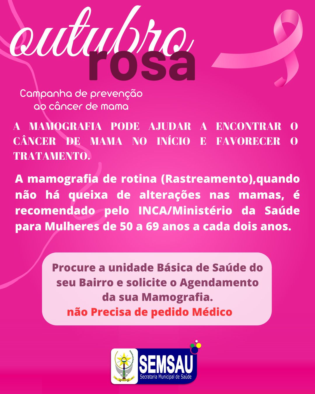 mamas, é recomendado pelo INCA/Ministério da Saúde para Mulheres de 50 a 69