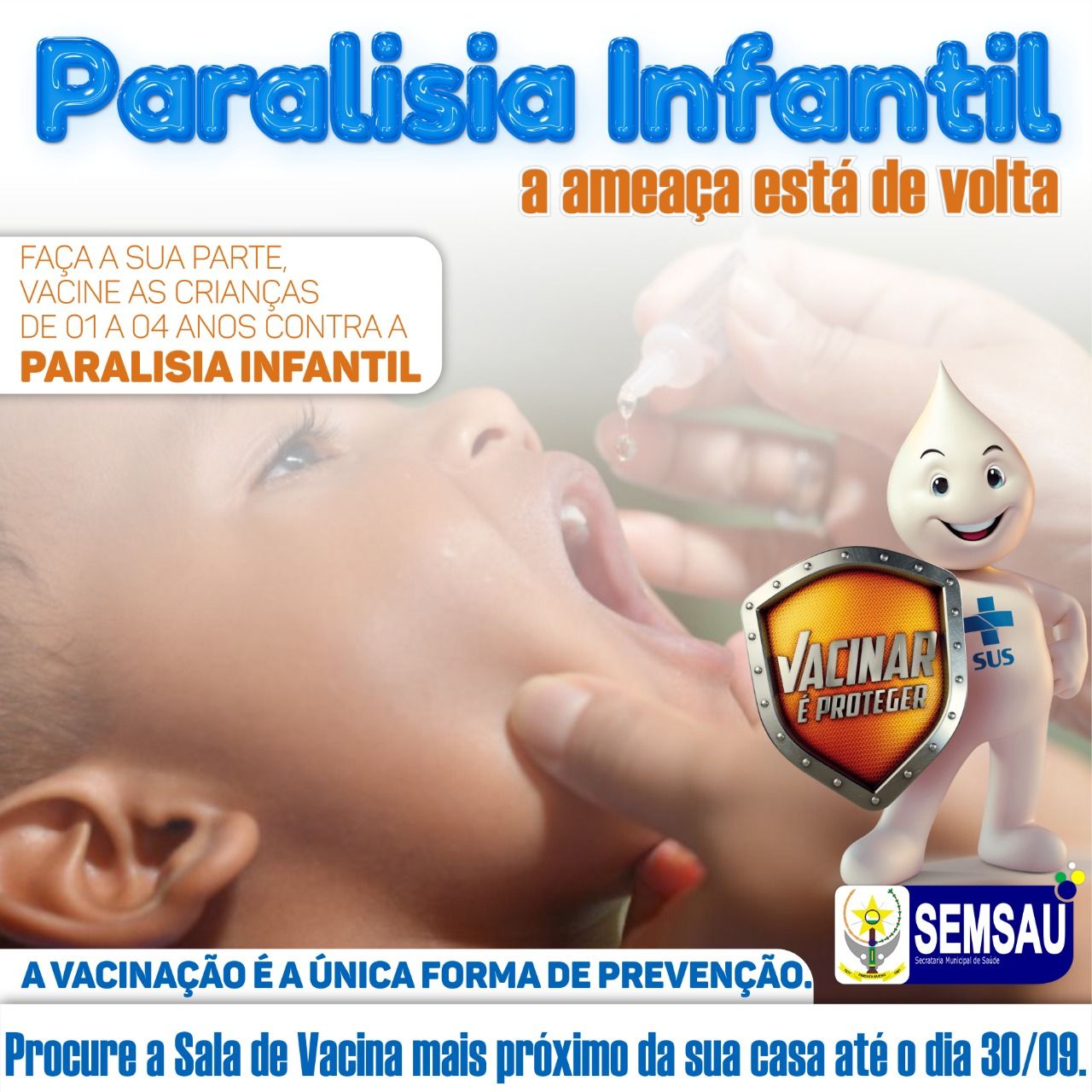 Faça a sua parte, vacine as crianças de 01 a 04 anos contra a PARALISIA