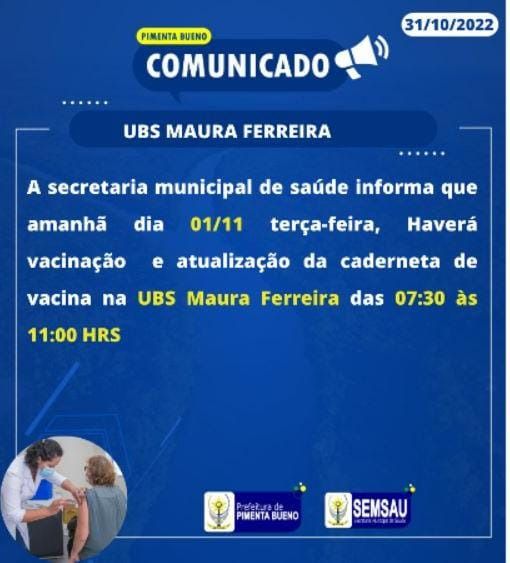 A secretaria municipal de saúde informa que amanhã dia 01/11