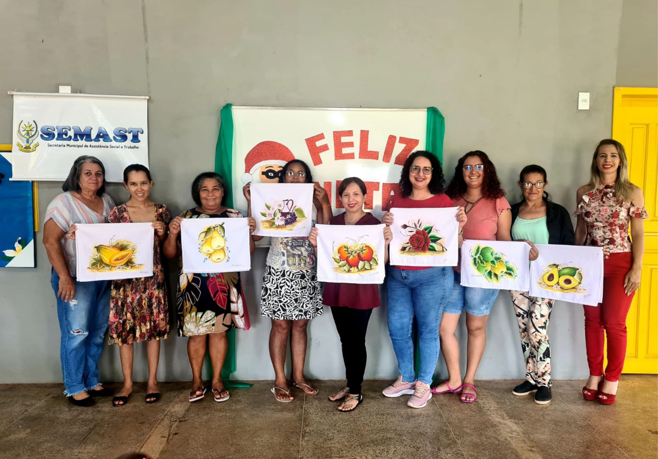 Nos dias 20 e 21 de dezembro/2022, a Secretaria Municipal de Assistência Social e Trabalho – SEMAST, realizou o encerramento das aulas do Curso Básico de Pintura em Tecido: Módulo Flores e Frutas, realizado no Centro Comunitário Pedro Cantelli, para turmas de crianças e adolescentes no período vespertino, e adultos, períodos matutino e vespertino, ministradas pela Servidora Roseli Borghi de Souza.