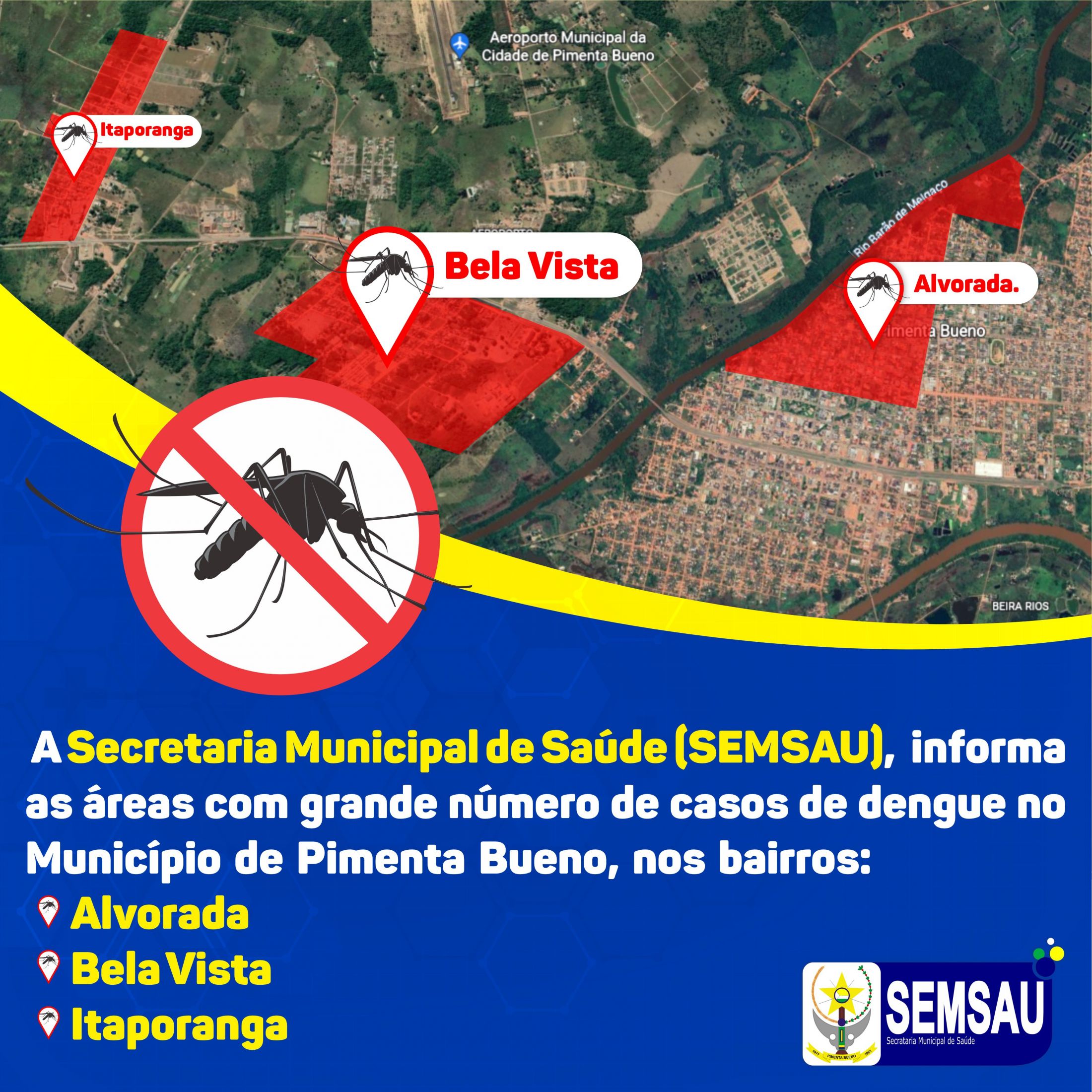 A Secretaria municipal de Pimenta Bueno vem registrando inúmeros casos de dengue no município, fique atento quanto aos sinais e sintomas: