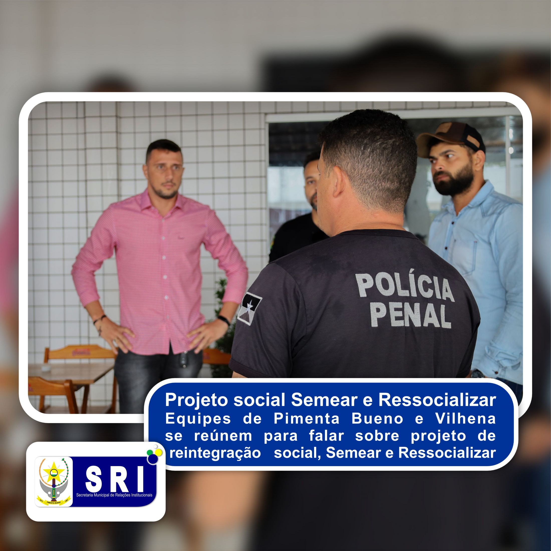 Nesta sexta-feira (27/01) o Secretário Municipal de Relações Institucionais Cássio Ribeiro e Superintendente da Secretaria Municipal de Obras Jonatan Meireles e Thiago Policial Penal do Município de Pimenta Bueno, se reuniram com equipe da Secretaria Municipal de Obras e Policia Penal do Município de Vilhena, para conhecer falar sobre projeto de reintegração social, Semear e Ressocializar, projeto voltado para apenados do regime fechado no qual tem o objetivo de profissionalizar os apenados desenvolvendo habilidades pessoais e profissionais, utilizando dessa mão de obra em favor do município.
