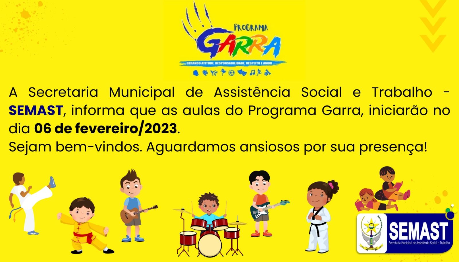 SEMAST, informa que as aulas do Programa Garra, que desenvolve os Projetos