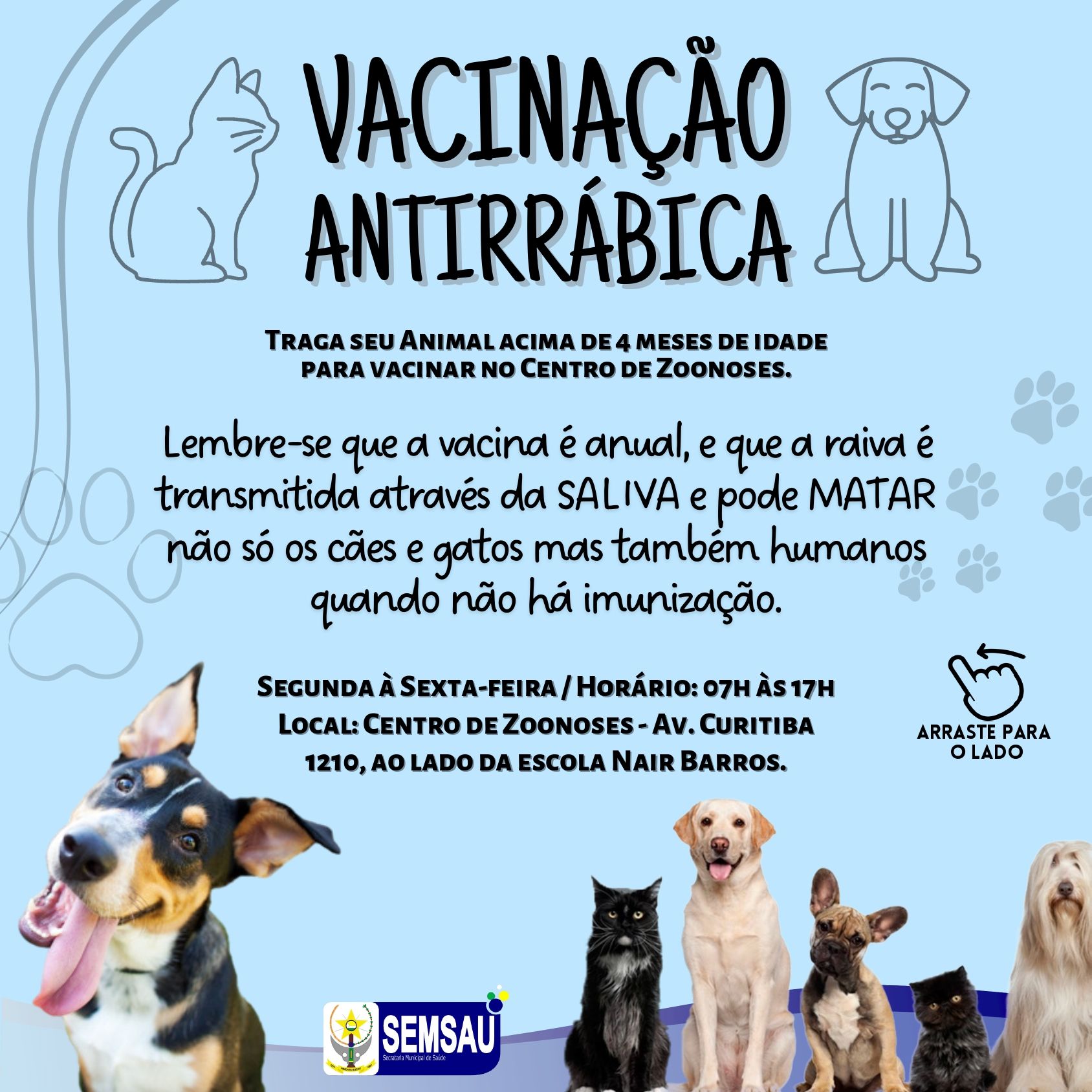 Lembre-se que a vacina é anual, e que a raiva é transmitida