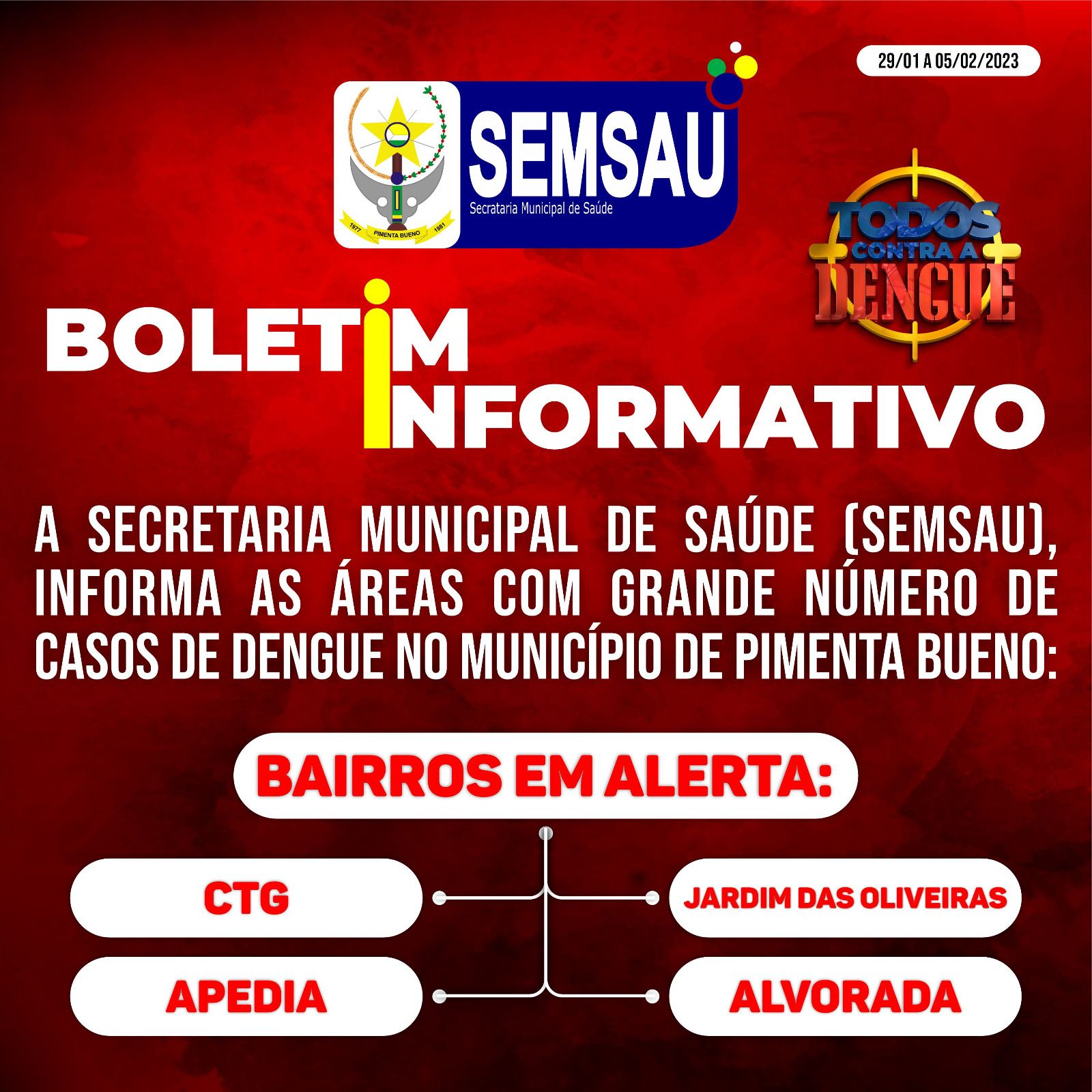 A Secretaria municipal de Pimenta Bueno vem registrando inúmeros casos de dengue no município, fique atento quanto aos sinais e sintomas: