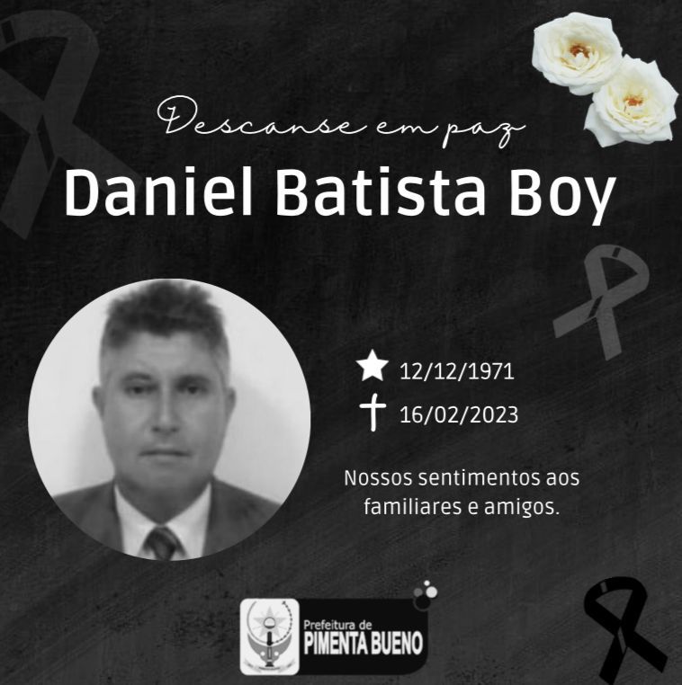 A Prefeitura de Pimenta Bueno recebe com grande pesar a notícia do falecimento de Daniel Batista Boy, pai da servidora Danieli da Silva Boy.