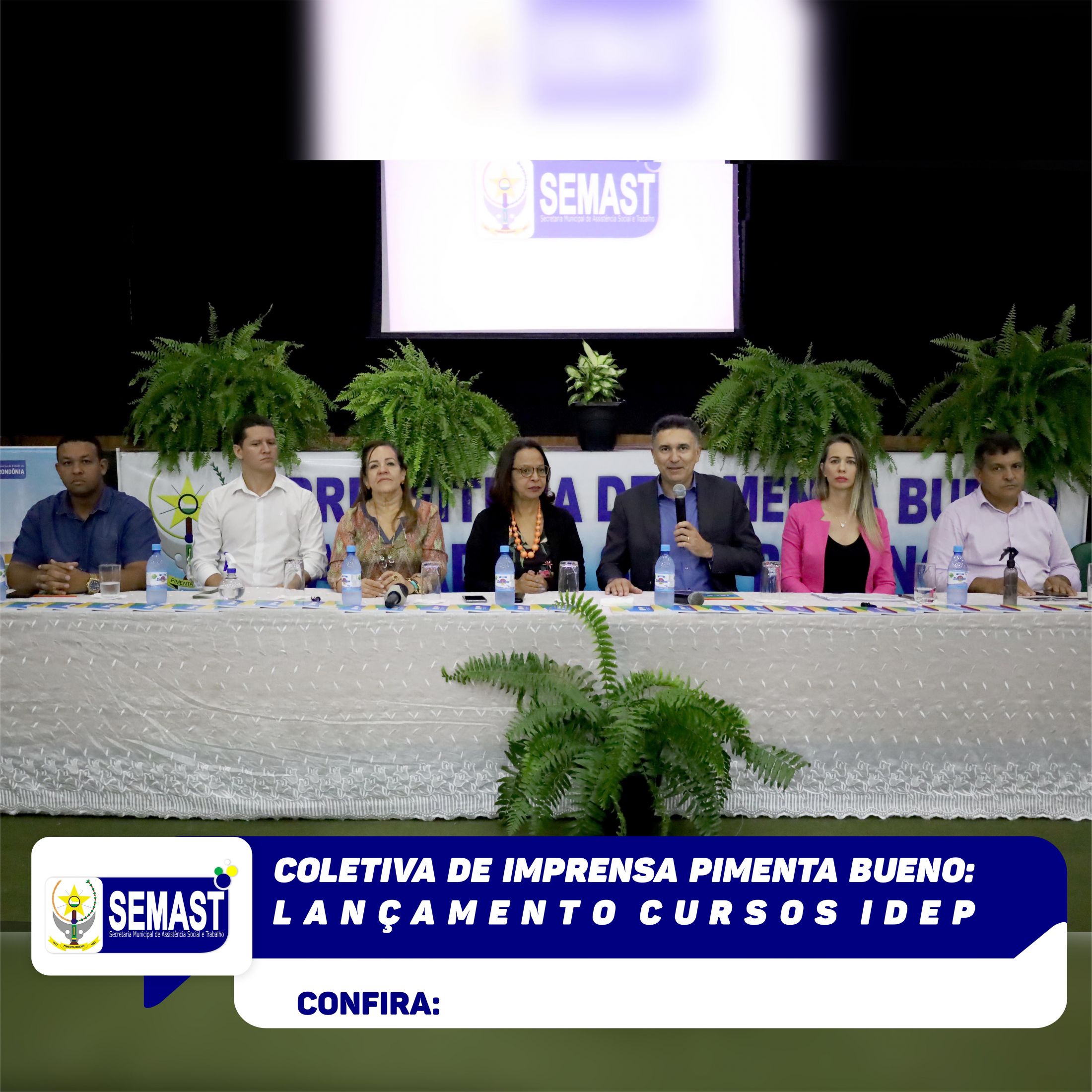 A Prefeitura de Pimenta Bueno realizou no dia 09 de fevereiro/2023, Coletiva de Imprensa com rádios e TV’s locais e da região, organizada pela Secretária de Assistência Social e Primeira Dama do Município, Cíntia Araújo, referente ao Convênio Firmado entre esta Municipalidade e o Instituto Estadual de Desenvolvimento de Educação Profissional – IDEP RO, para a oferta de cursos que serão executados por meio da SEMAST.