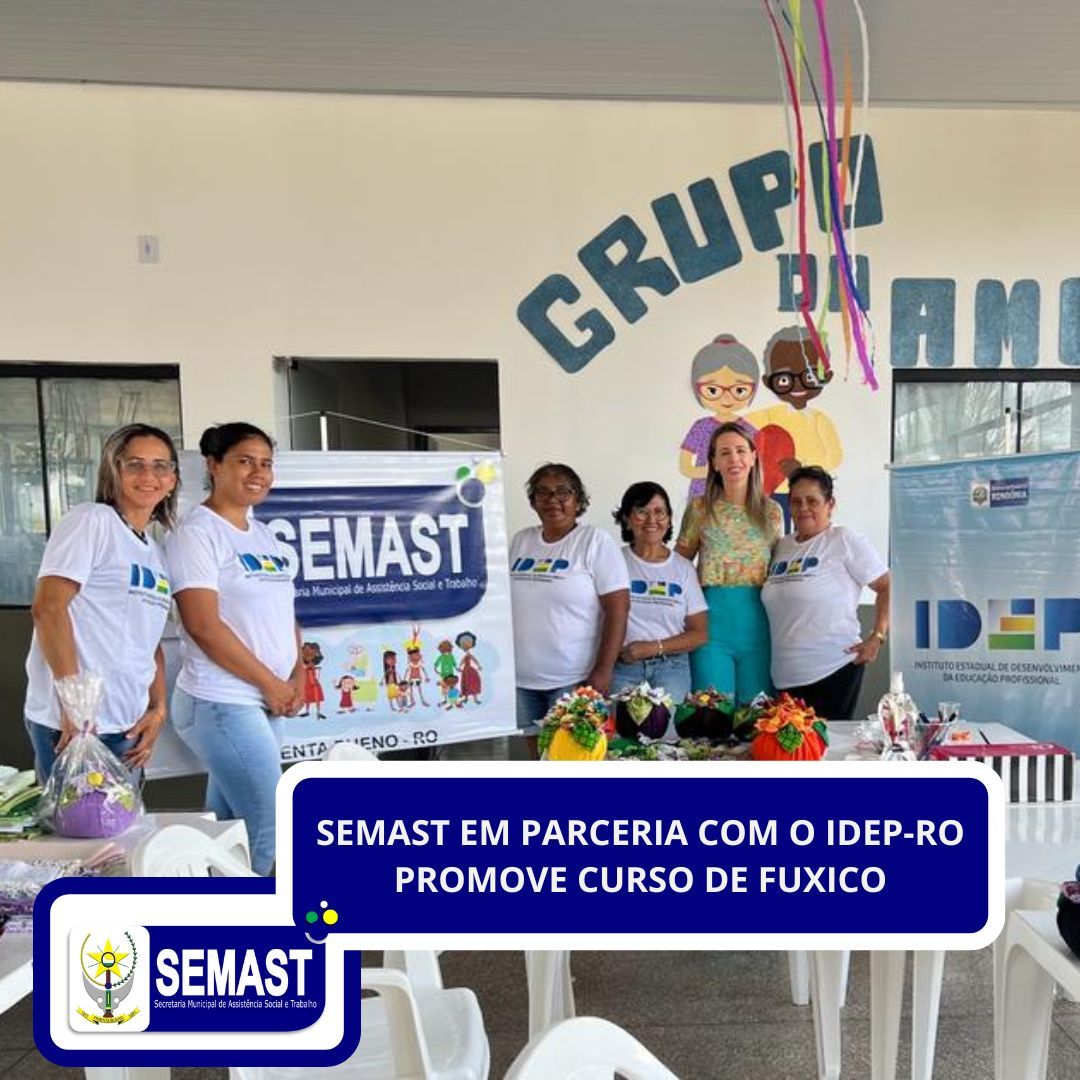 A Secretaria Municipal de Assistência Social e Trabalho – SEMAST, promoveu o Curso para Capacitação Profissional de Artesanato em Tecido - Fuxico, em parceria com o IDEP-RO, no período de 13 a 15 de fevereiro/2023, realizado no Centro de Convivência da 3ª Idade, com duração de 20 horas, ministrado pela Instrutora Rose Mary Alves Xavier.