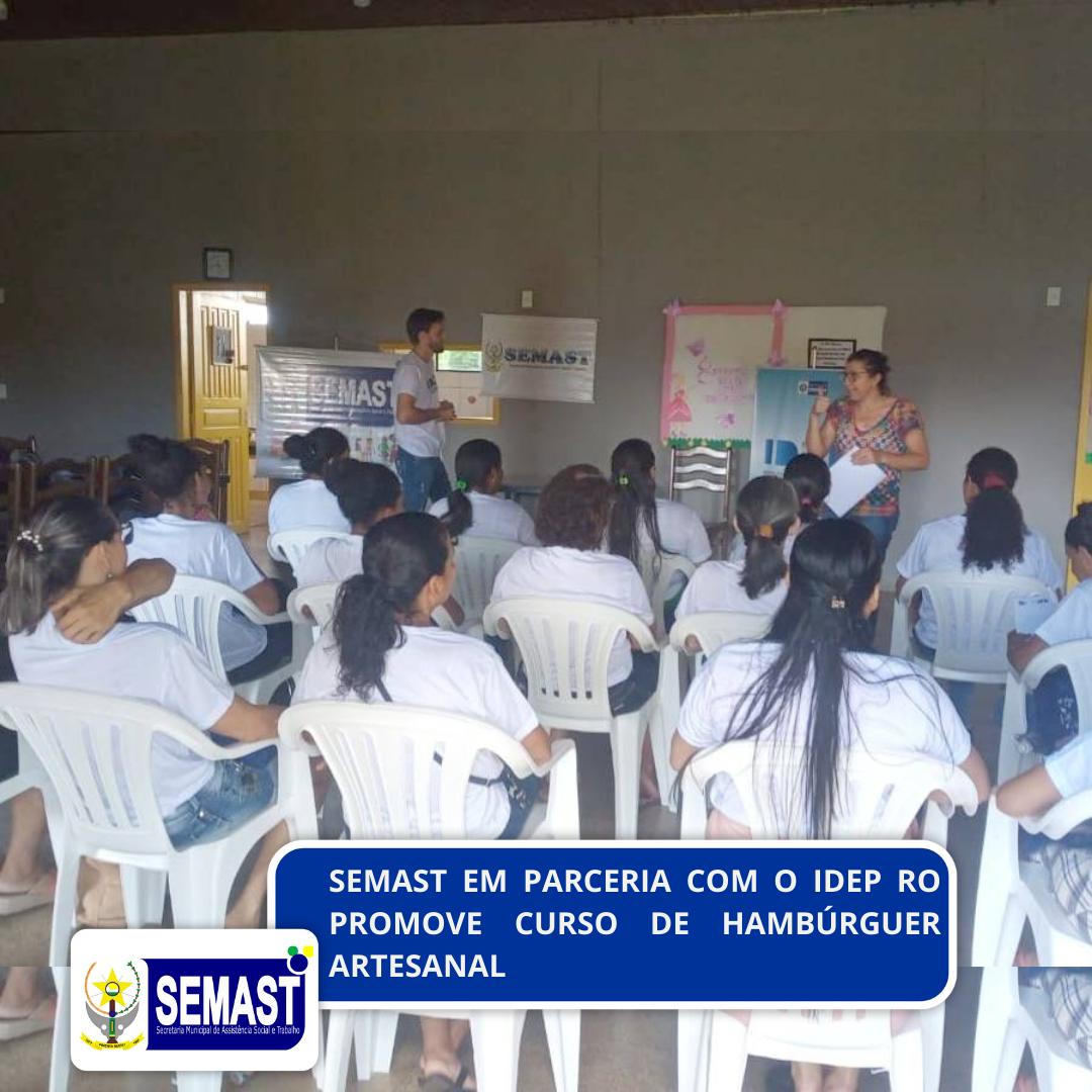 A Secretaria Municipal de Assistência Social e Trabalho – SEMAST, promoveu o Curso para Capacitação Profissional de Hambúrguer Artesanal, em parceria com o IDEP RO, no período de 27 a 31 de março/2023, realizado no Centro Comunitário Pedro Cantelli, período vespertino, com duração de 20 horas, ministrado pelo instrutor Ernane Renato Karnopp.
