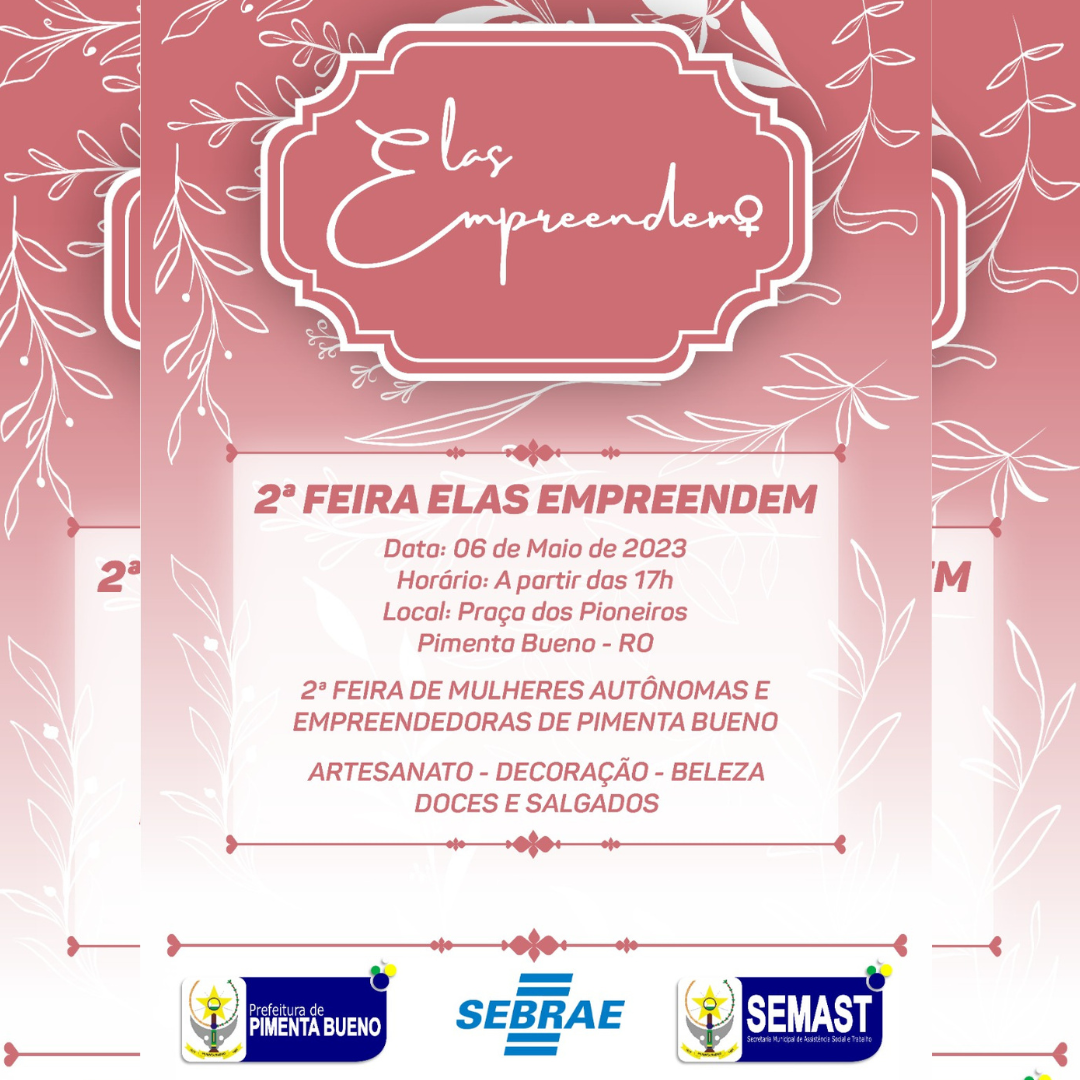 A 2ª Feira Elas Empreendem - Edição 2023, acontecerá no dia 06 de maio de 2023, a partir das 17h, na Praça dos Pioneiros. Venha prestigiar os trabalhos das Mulheres Pimenta-buenenses!
