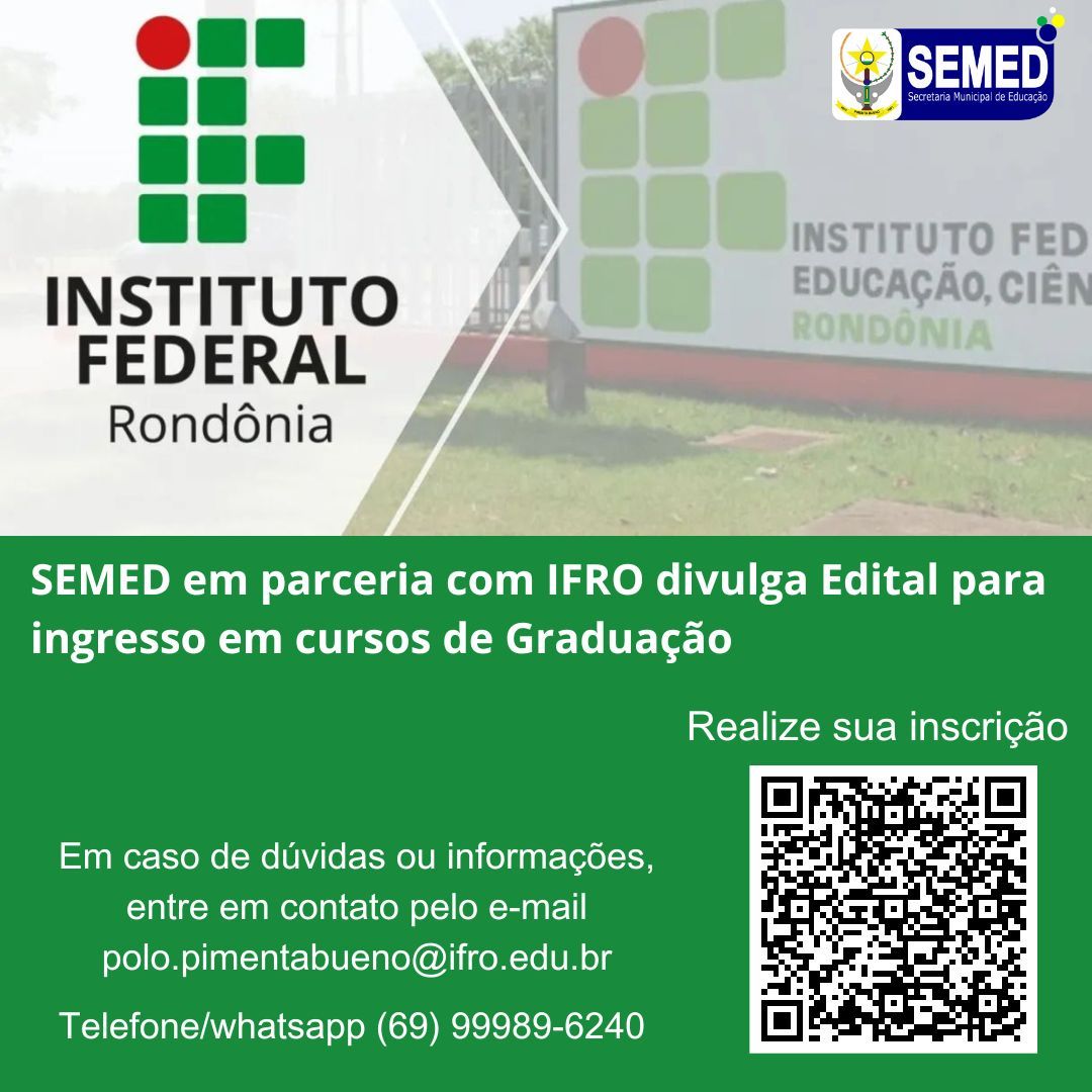 Em caso de dúvidas ou informações, entre em contato pelo e-mail - polo.pimentabueno@ifro.edu.br.
