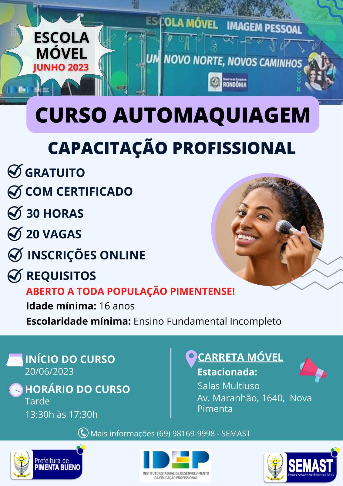 Local do curso: Carreta Móvel estacionada na Sala Multiuso Campo do Brejão, Av. Maranhão, 1640, Nova Pimenta