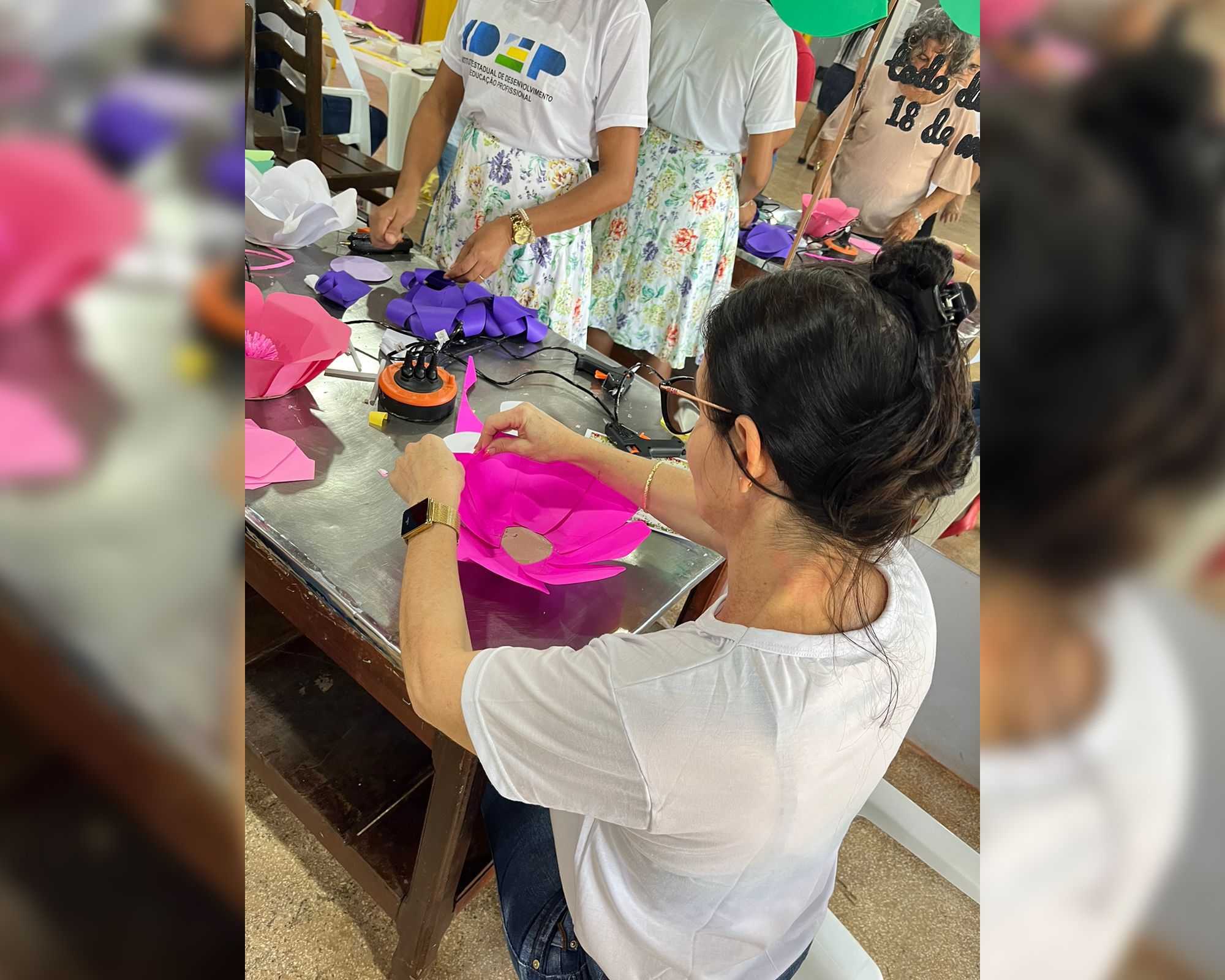 SEMAST EM PARCERIA COM O IDEP RO PROMOVE CURSO DE FLORES DE PAPEL GIGANTE