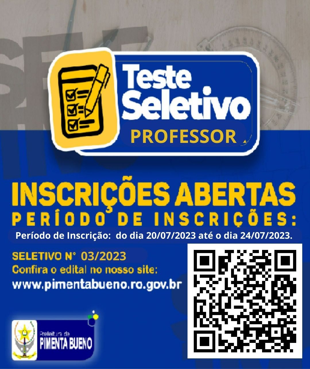 Prefeitura de Pimenta Bueno abre Teste Seletivo para contratação de profissionais para a educação.